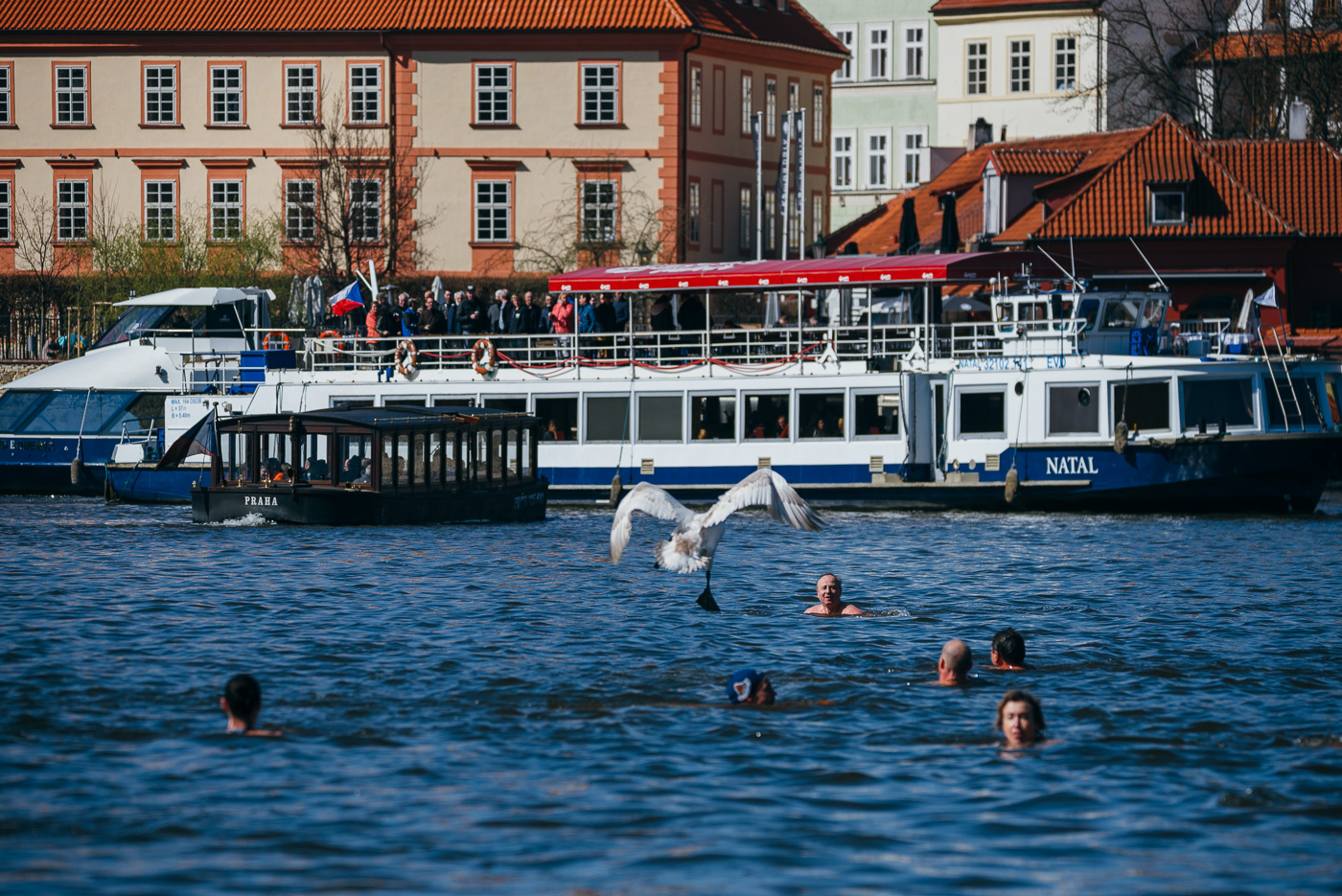 - Otužilecké plavání ve Vltavě pod Karlovým mostem.